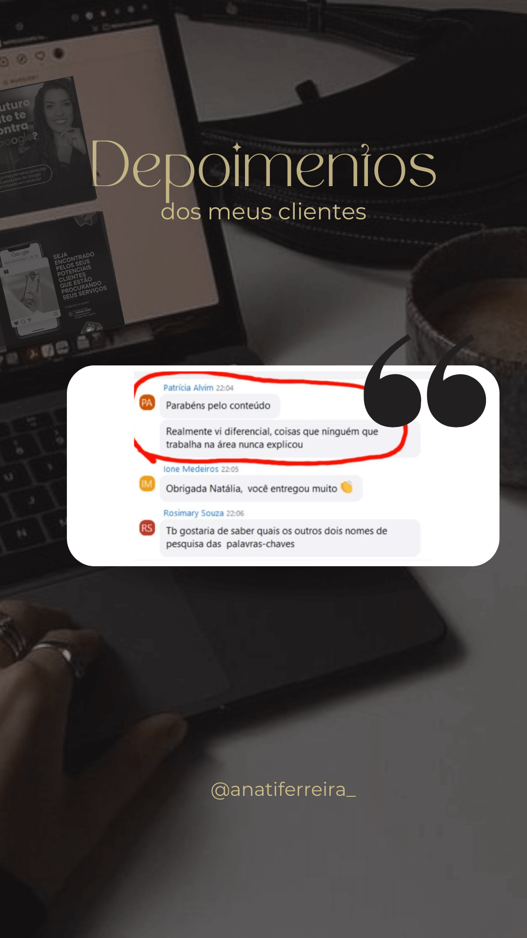 Natalia Ferreira é especialista em posicionamento de negócios no Google e SEO Local . Com 6 anos de experiência em marketing digital, já ajudou diversos clientes a alcançar as primeiras posições no Google através de estratégias orgânicas. Ela criou o método Google Power para que donos de negócios locais e prestadores de serviços possam atrair mais clientes sem precisar investir em anúncios.